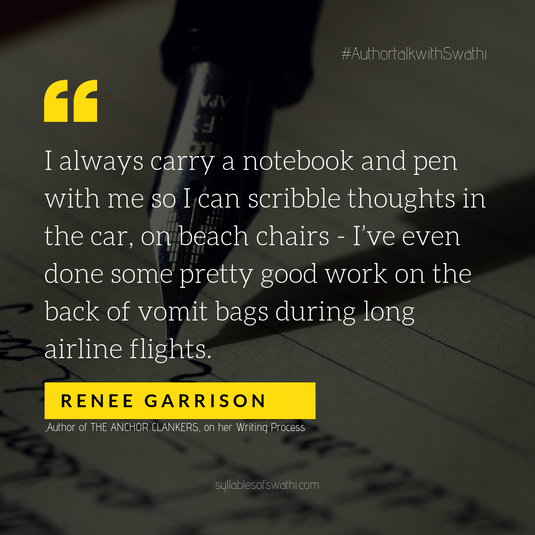 Author Interview with Renee Garrison Today I had the pleasure of talking to Renee Garrison. She is the author of THE ANCHOR CLANKERS, which won a Gold Medal in the Florida Authors and Publishers Association President’s Book Awards in the Young Adult/Coming of Age category last year! Meet this wonderful person who is a great Inspiration to thriving authors. Today she talks about her book, her unique writing process and much more! Scroll along to read about her Award Winning book at the end of the page. Author Biography Renee Garrison was born in Washington DC. Her father was a naval aviator, whose job required the family to move every three…