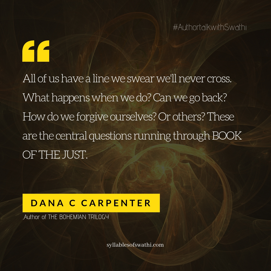 Today on the Blog, I am so proud and thrilled to have the Award Winning Author Dana Chamblee Carpenter who has just released her final instalment to the very famous Bohemian Trilogy "Book Of The Just" (October 2, 2018, Pegasus Books). Imbued with a rich sense of history, magic, and mythology, “Book of the Just” is a paranormal mystery/thriller that spans centuries starting with the medieval period, so it's great for history buffs, too. Dana's second book not only won the Silver Falchion in the Sci-Fi/Fantasy/Horror category but also won Best Overall novel at the Nashville-based National mystery conference Killer Nashville!